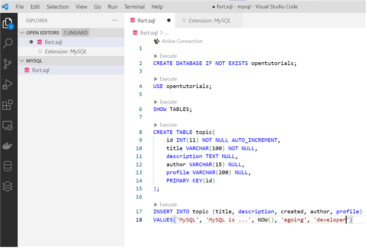 vscode, visual studio code에서 MySQL사용하기