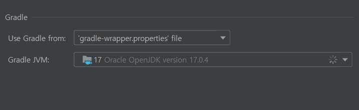 Gradle JVM을 17로 바꿔줍니다. 그리고 다시 실행해보면