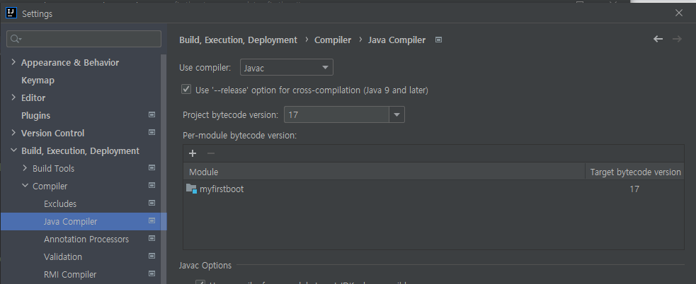 컴파일러도 아므과 같이 바이트코드 버전이 17로 되어있음