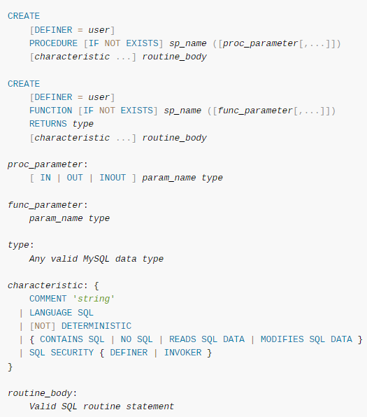 DROP {PROCEDURE | FUNCTION} [IF EXISTS] sp_name