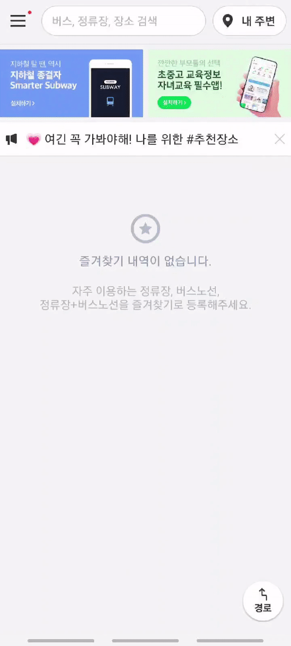 버스정류장 옆 별 버튼을 누르면 즐겨찾기에 추가됩니다.