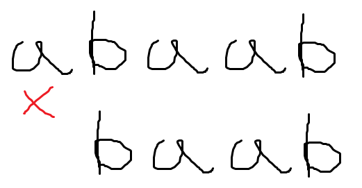 - 홀수길이일 때: 홀수길이 팰린드롬으로 만들어지는 경우 (ex. bbabb)