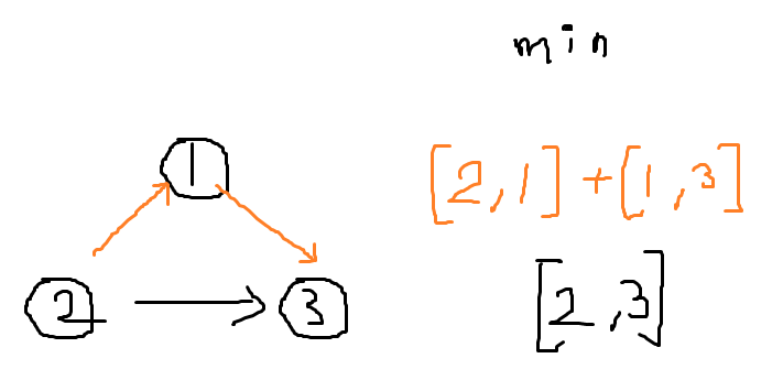 - 1을 경유하는 거리 D[2, 1] + D[1,3]