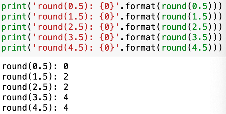 일반적으로 0.5 반올림은 1이라고 생각하실텐데, 파이썬 round함수는 0을 반환합니다.