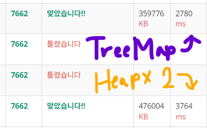 - 그리고 현재 숫자의 개수를 저장하는 map을 사용하여 현재 숫자가 힙에서 빠졌는지 확인해야할 것 같음