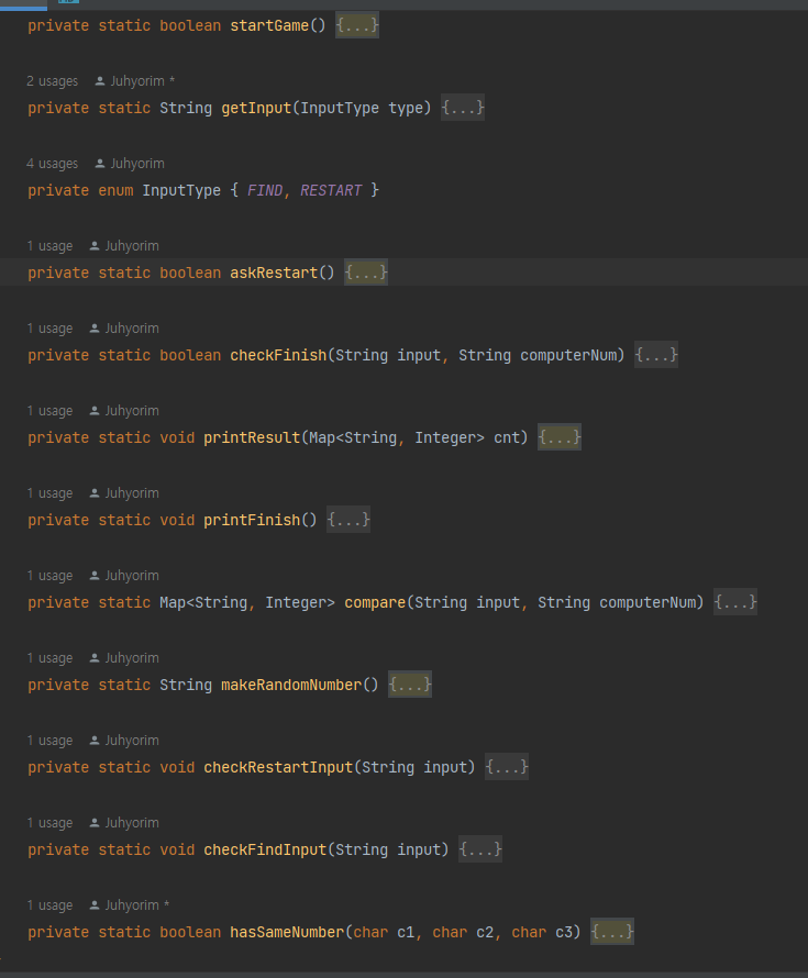 게임종료_후_재시작() 코드만 분석해봤을 때는 Randoms를 mock으로 하여 전체를 통합테스트하는 느낌이었습니다. 제가 원하는 단위테스트 느낌은 아니었던 것 같지만, 새로운 자바문법들도 알게되어 도움이 되었던 것 같습니다. 시간이 더 있었다면 끝까지 분석해보고 싶었지만 시간이 부족하여 일단 제 코드에 대해 단위테스트를 해보기로 하였습니다.