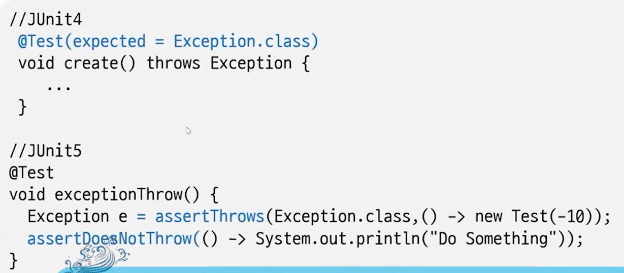 - 예외의 내부상태 검증 기능 추가되어, 기대하는 예외 기술방식으로 테스트 수행할 수 있게 되었다고 한다