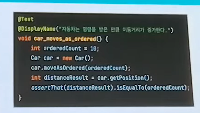 (예시가 자동차경주 기능 테스트관련이라 이번주차 우테코과제에 대한 조금의 스포가 있지만, 내 기능구현은 모두 끝난 상태였고, 단위테스트 예시가 궁금해서 들었다)