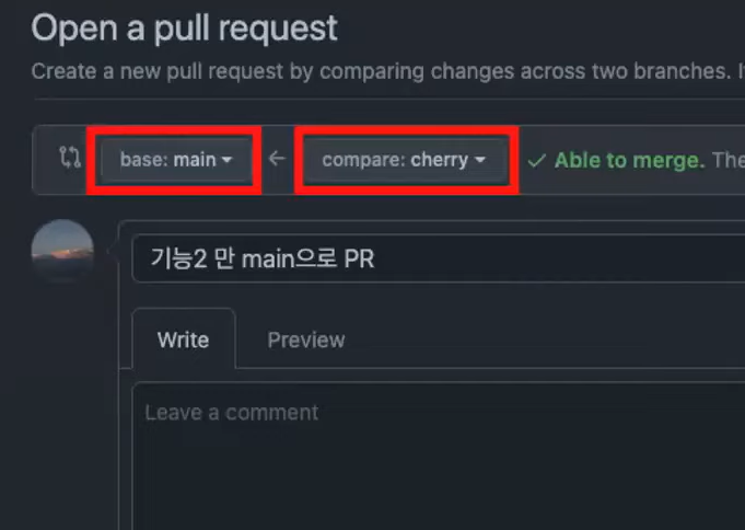 - main브랜치에서 체리픽하고, 바로 roigin main에 푸시하는 방법