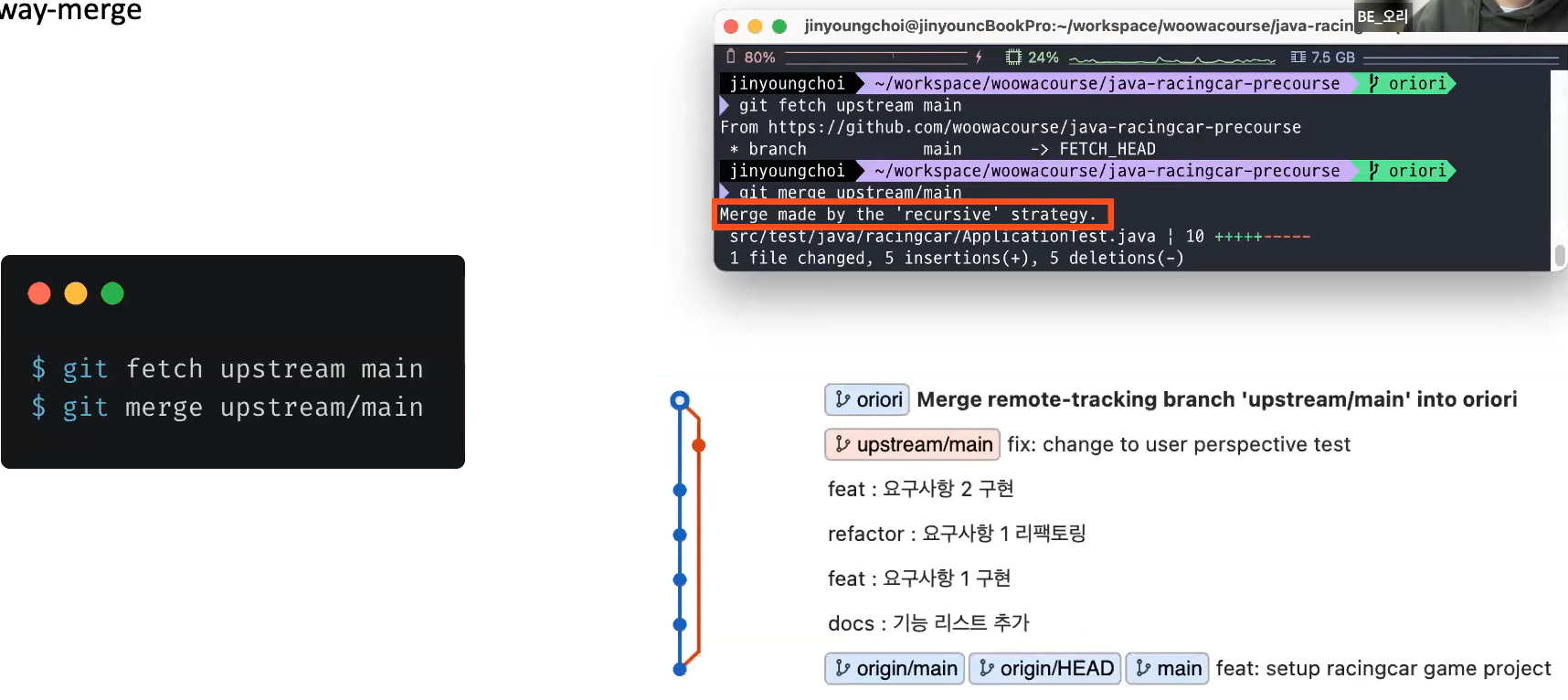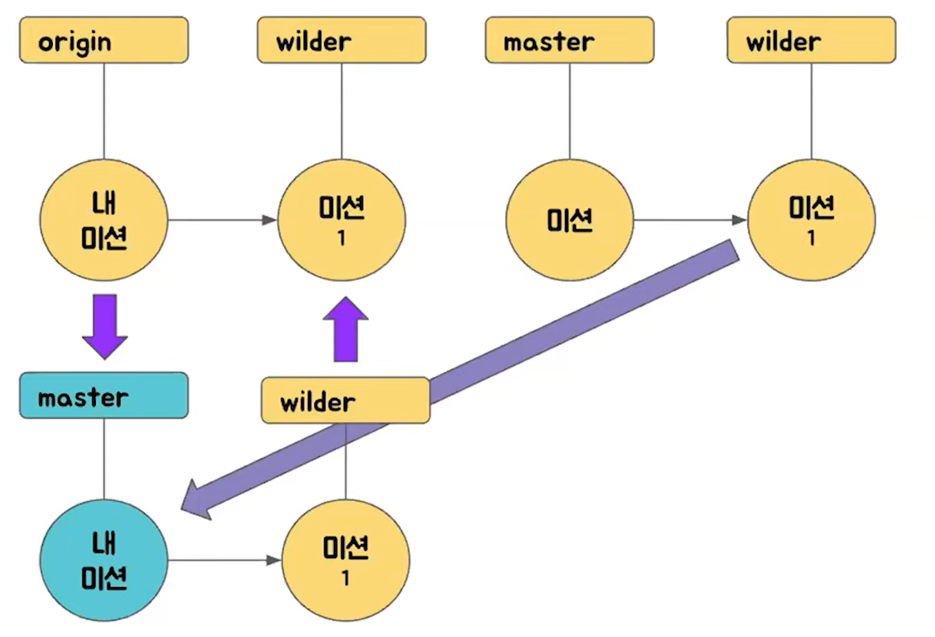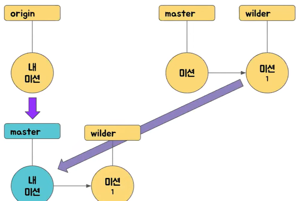- upsteram에서 필요한 브랜치정보를 가져오는 방법이다 fetch