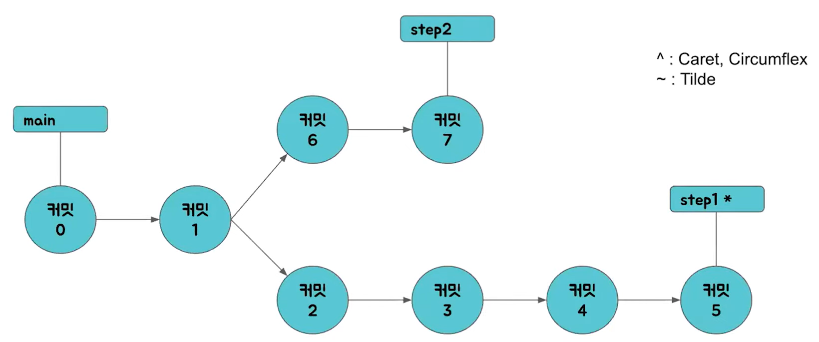 - ^는 캐럿이라고 부르며, 한 번 이전 커밋을 가리킨다