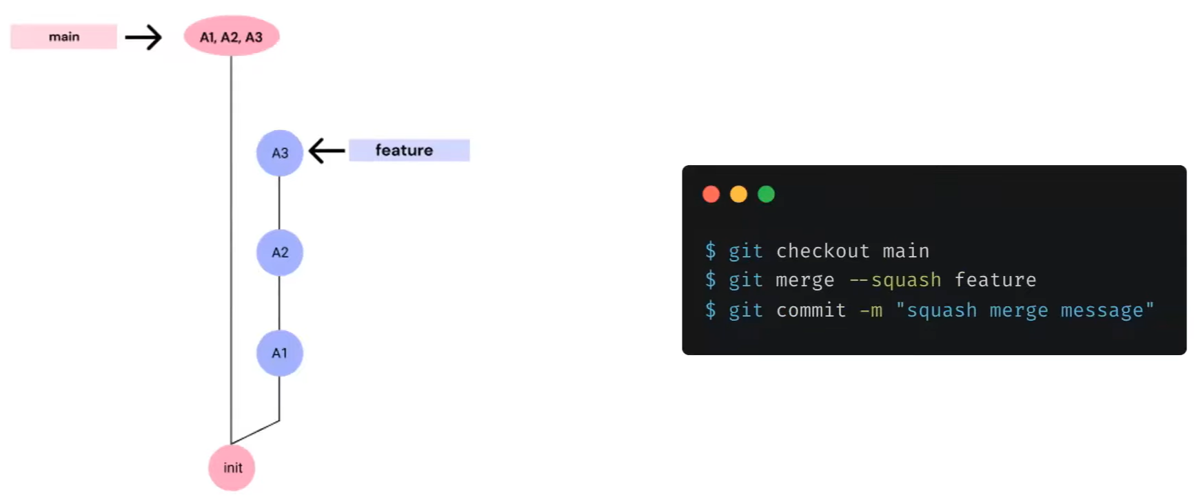 - 기능에 대해 작업한 모든 커밋을 하나의 커밋으로 통합해서 머지하는 작업이다