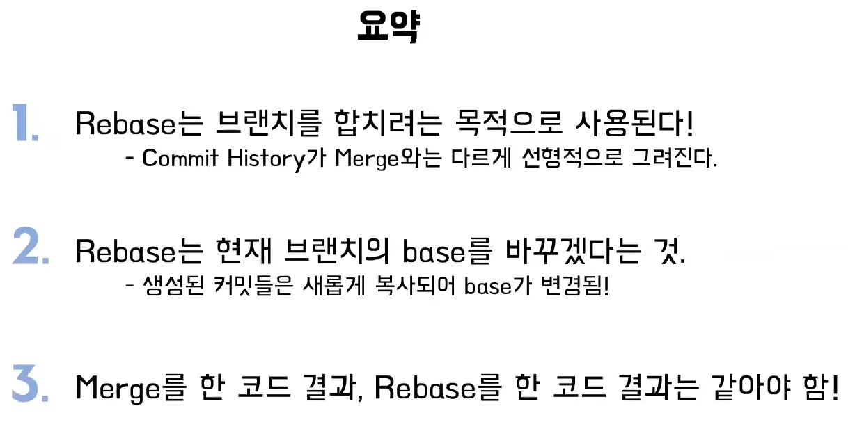 - merge처럼 브랜치끼리 합치는 방법 Rebase