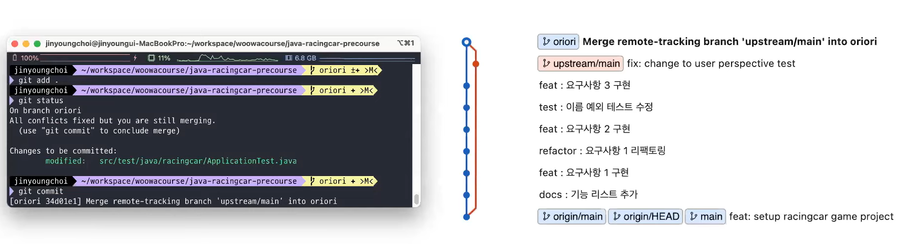 - 다음 원격저장소 머지된 1단계미션 브랜치 로컬로 가져와서 브랜치 원격저장소 저장함
