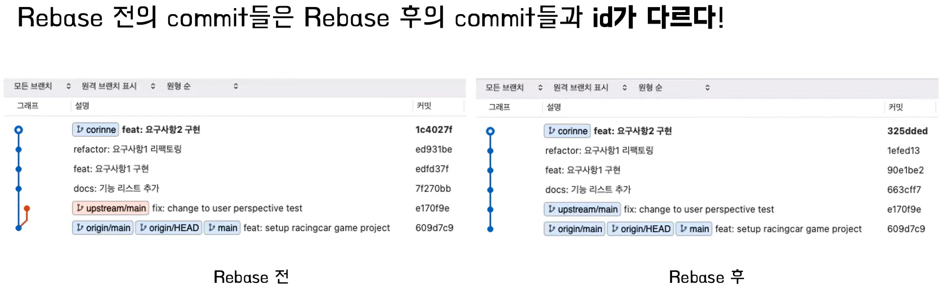 - 이 방법은 다른사람이 사용하는 remote branch에서는 사용하지 않는다