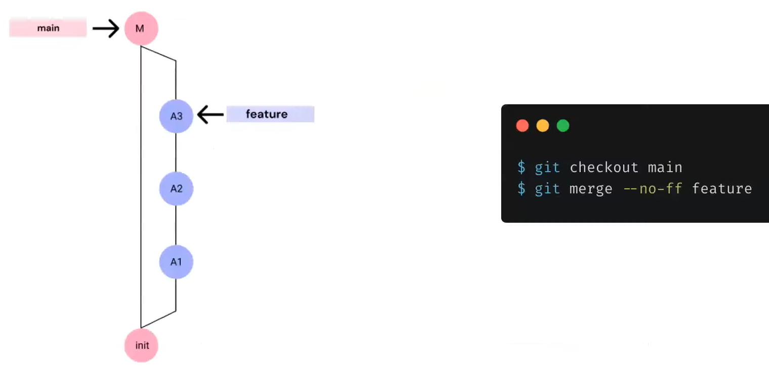 - basebranch같아도 fast-forward 머지를 진행하지 않고, 하나의 머지커밋을 생성해서 머지를 진행하는 방법이다