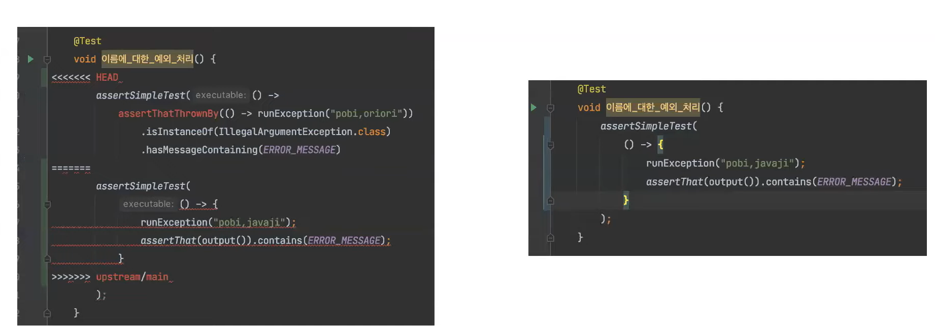 충돌을 해결하고 머지를 진행하기 위해서는 직접 수정하거나 자동수정을 해야한다.