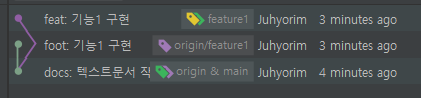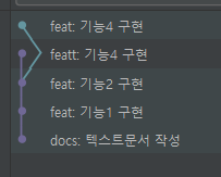- 기능구현을 위한 브랜치를 만들어 거기다가 push한 상황