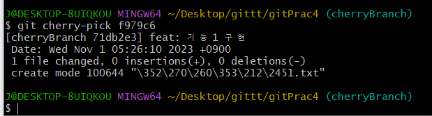 (2) 새로운 브랜치를 만들어 cherry pick하기