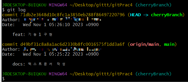 cherryBranch에는 굉장히 깔끔한 커밋만 남게되었다!