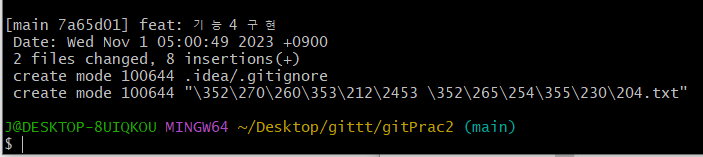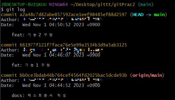 이런 메시지가 뜨면 성공한거다! 깃 로그를 보면 다음과 같이 변경되어있다